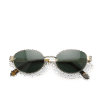 Isola er en rund solbrille med gullfarget innfatning i metall. Solbrillene har brede metallstenger og skilpaddemønstrede acetat-tupper. 100 % UV-beskyttelse, og grønn tonede glass som skjermer effektivt mot sterkt sollys. En markert modell med subtile retroreferanser og et moderne uttrykk. Beskyttelsesetui følger med.