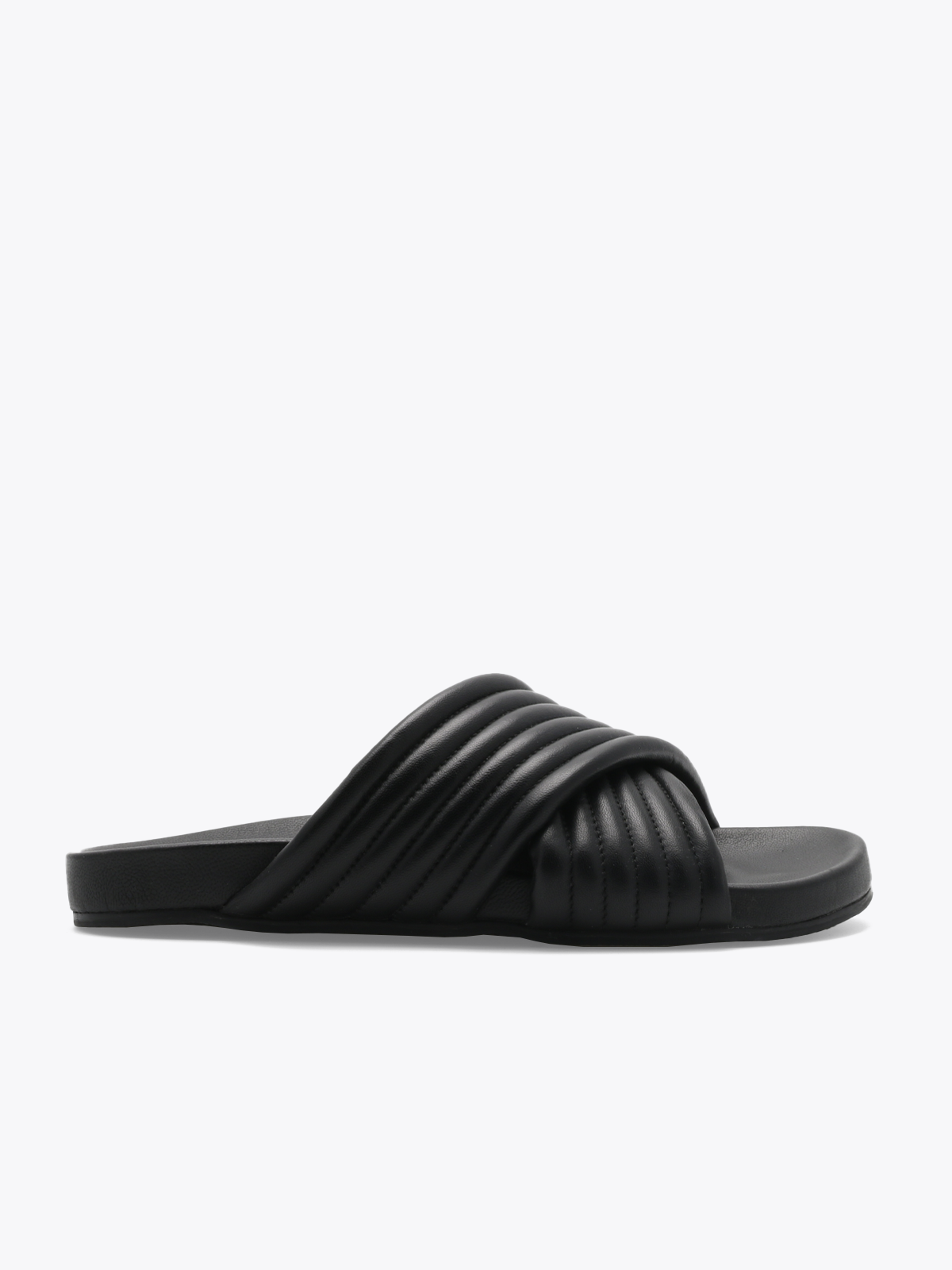 Rima slides er en myk og komfortabel slip-in sandal med kryssede, vatterte remmer i ekte skinn. Modellen har rund tå, fleksibel yttersåle og fotformet innersåle som gir god demping og en behagelig passform. En lett og anvendelig sandal med et monokromt uttrykk, perfekt til hverdagsbruk på varme dager.